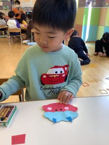 出来るようになった事が増えたぶどう組の子どもたちは製作内容も1人ずつ違うのでとても楽しそうに製作を行ってくれていますよ