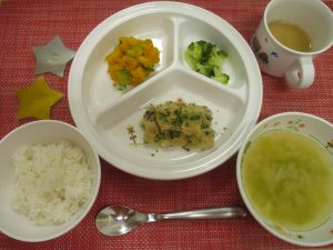 サンライズキッズ保育園 ◎給食の様子 今日は、魚のナポリタン風でタラを使用しました。旬のお魚は脂がの...