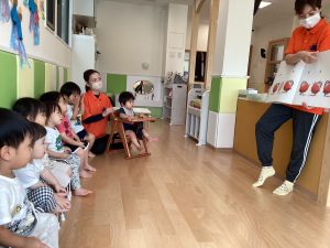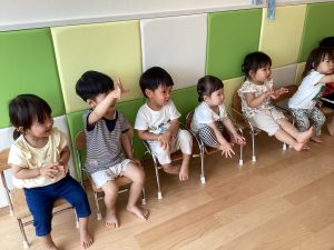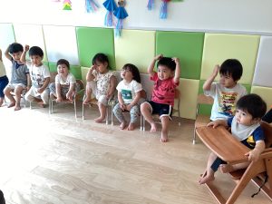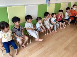 「だるまさんの〜♪」の呼びかけに各務原園のお友だちは、体を左右に揺らして、