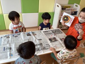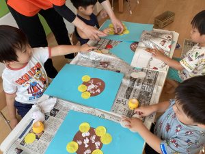 読んだ後は、自分たちで、「ひまわり」を作っていました![]()