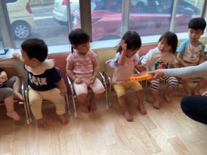 りんご組さんには、もも組のお友だちのお手伝いをしてあげようとする子もいます![]()