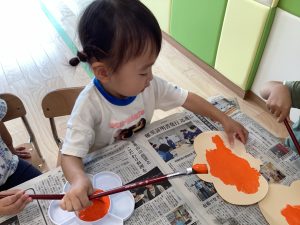 りんご組さんは、筆を使ってハロウインの製作をしました![]()
