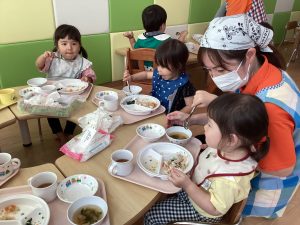 たくさん遊んだ後は、給食タイム