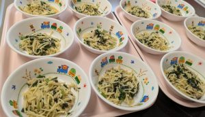 みんなで「いただきます」と食べる前のごあいさつも習慣になりました♪「おいしい~」「ありがとう」と大人でもなかなか言葉にできないことを言ってくれます♪調理スタッフもとても嬉しく励みになります!(^^)!今日もたくさん食べてくれました!!