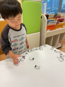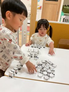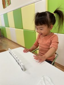 ドミノ遊びに夢中の様子![]()