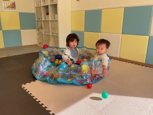 ボールプールで保育者とポイ!っと