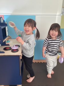 おままごと遊びでもお友だちとのやりとりが増え、楽しそうです