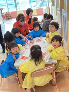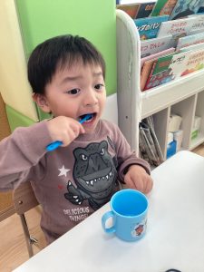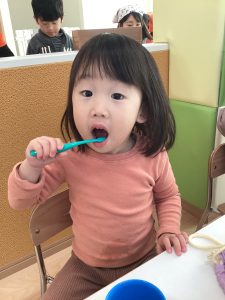 りんご組さんは、給食のあと歯磨きを頑張っています
