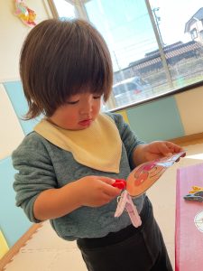 もも組さんは洗濯バサミに挑戦中