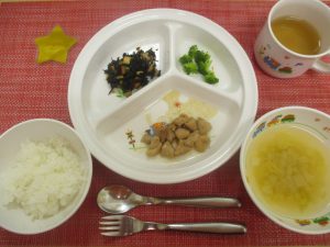 サンライズキッズ保育園 ◎給食の様子 今日の給食は、人気の照り焼きチキンでした。お肉料理が好きな子が...