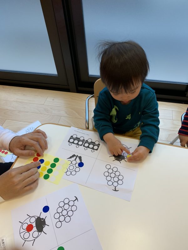 お次は座って遊ぶ「シール貼り」です![]()