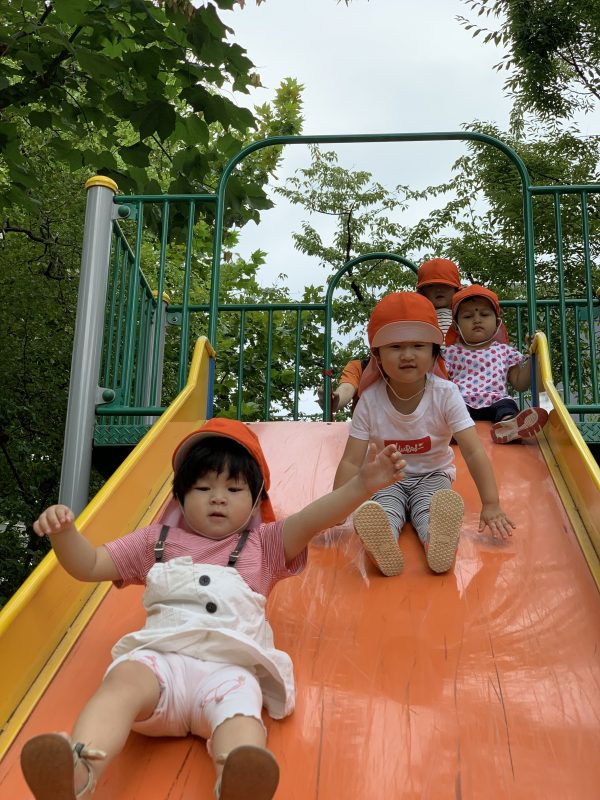 たくさん滑り台で遊んで、広場でかけっこをして楽しく過ごしました![]()