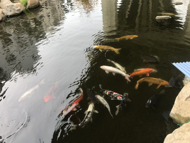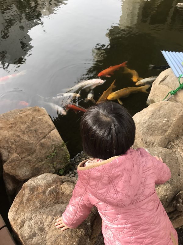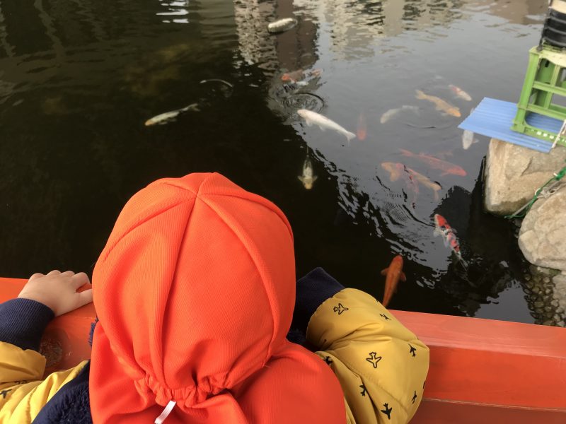 保育園から少し歩いたところに亭園があるのですが、そこの池に鯉がいるので、その鯉を見る事を目的に行ってみることにしました![]()
