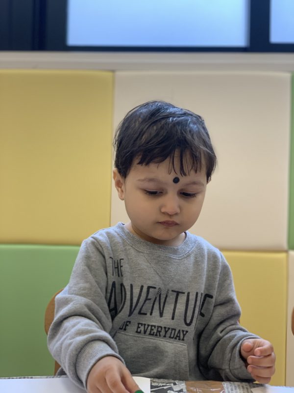 丸を書いたり、点々をかいたりはもちろんですが保育士に聞きながらお友達同士で顔をかきあったりして楽しくお絵かきをしてくれていました![]()