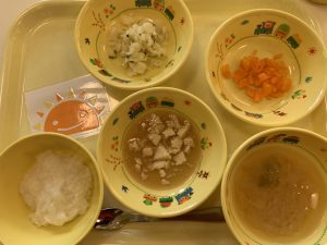 軟飯 肉団子スープ まぜまぜサラダ さつま芋の甘煮