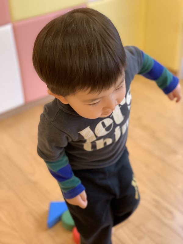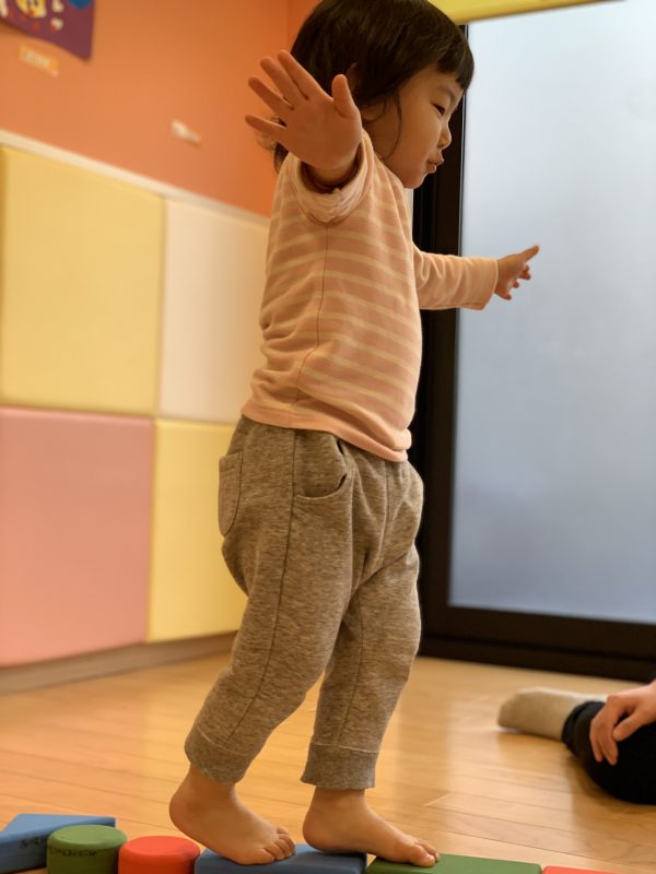 上手に並べることができたら、平均台代わりにして「おっとっと!!」と言いながら遊んでいました![]()