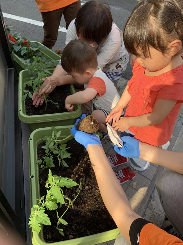早速みんなでプランターに植えてみることにしました![]()