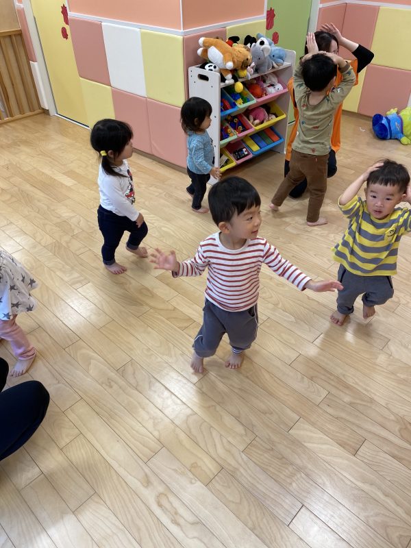 音楽に合わせて動いたり止まったりする活動になるのですが、とっても盛り上がります