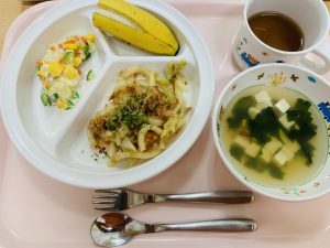 焼きうどん すまし汁 ポテトサラダ バナナ