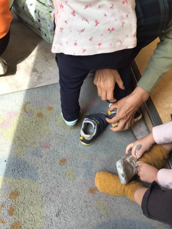 お散歩に出るときは自分で靴を履くのですが、だんだん自分一人でできるようになってきました![]()