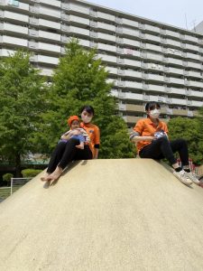また、この園のある亀戸五丁目周辺をとっても目立つオレンジ色のユニフォーム(笑)で元気いっぱいの子どもたちとほぼ毎日お散歩しておりますので、