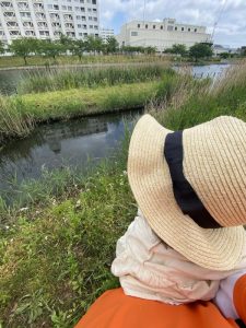 タイル渡りを楽しんだ後は、大好きな河川敷へやってきました!
