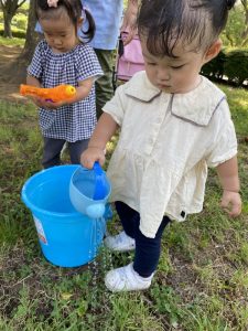 ジョウロにお水を汲んだり