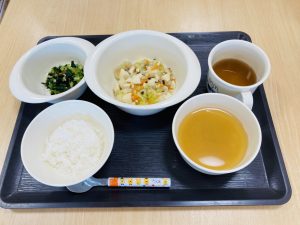 ※小松菜は、緑黄色野菜の中でも栄養価が高い食材です。シャキッとした歯触りです。みんな良く噛んで食べていました。
