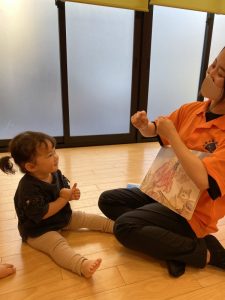 サンライズキッズ亀戸園風にアレンジして楽しみながら読み聞かせを行いました。(><)