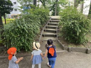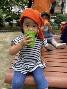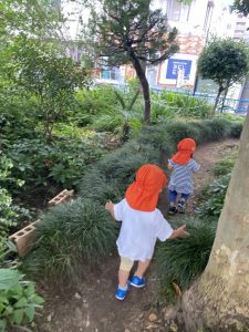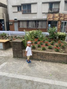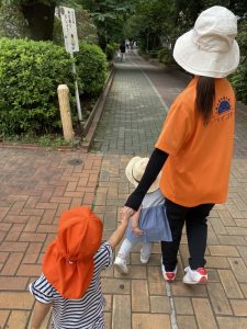 また、この園のある亀戸五丁目周辺をとっても目立つオレンジ色のユニフォーム(笑)で元気いっぱいの子どもたちとほぼ毎日お散歩しておりますので、