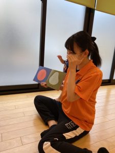 色んな表情のお顔が出てくるユニークな絵本の読み聞かせを行いました。(><)