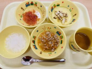 粥  鶏と野菜の煮物 トマト煮 バナナ