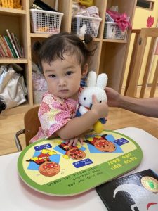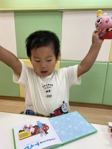 大好きなアンパンマンの絵本を読んでいる時もはなさないもん♪