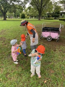 また、この園のある亀戸五丁目周辺をとっても目立つオレンジ色のユニフォーム(笑)で元気いっぱいの子どもたちとほぼ毎日お散歩しておりますので、