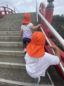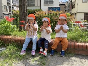 また、この園のある亀戸五丁目周辺をとっても目立つオレンジ色のユニフォーム(笑)で元気いっぱいの子どもたちとほぼ毎日お散歩しておりますので、