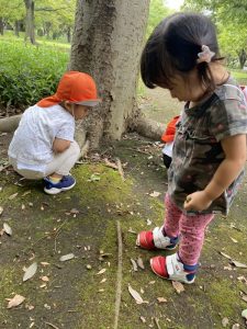 せんせい、こっちこっち沢山何か落ちているよ♫
