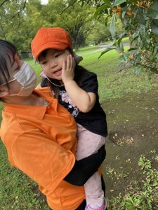 また、この園のある亀戸五丁目周辺をとっても目立つオレンジ色のユニフォーム(笑)で元気いっぱいの子どもたちとほぼ毎日お散歩しておりますので、