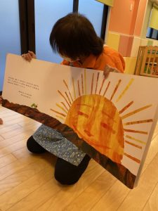 今回は特大サイズのはらぺこあおむしの絵本です☺️