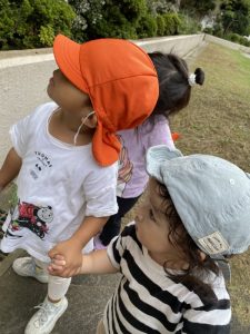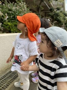 また、この園のある亀戸五丁目周辺をとっても目立つオレンジ色のユニフォーム(笑)で元気いっぱいの子どもたちとほぼ毎日お散歩しておりますので、