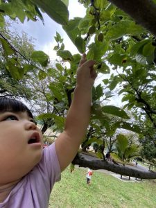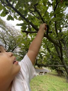 せんせい、こっちにも面白い木の実があるよー!