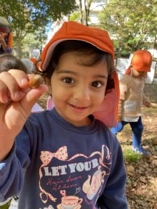 ほら、せんせいみてみてーこんなにおおきなどんぐりを見つけたよ?