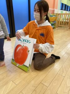 今回は「りんごがドスーン」という大きな絵本です☺️