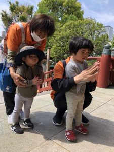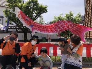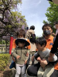 また、この園のある亀戸五丁目周辺をとっても目立つオレンジ色のユニフォーム(笑)で元気いっぱいの子どもたちとほぼ毎日お散歩しておりますので、
