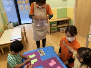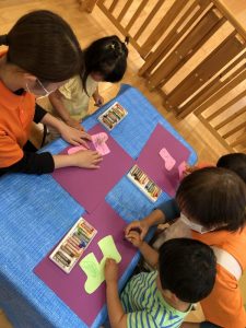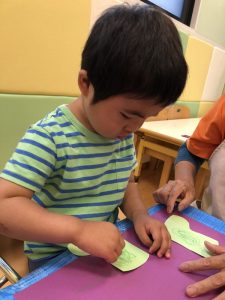 今週は、みんなで6月の制作「長靴」を行った時の様子を紹介したいと思います。
