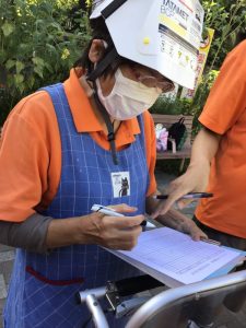 また、この園のある亀戸五丁目周辺をとっても目立つオレンジ色のユニフォーム(笑)で元気いっぱいの子どもたちとほぼ毎日お散歩しておりますので、