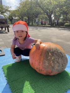 カボチャと背比べしたら、私の方が大きいよ〜\(^^)/