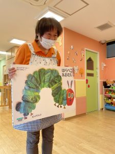みんな大好きな「はらぺこあおむし」を読んでもらって夢中になって見ています❤️