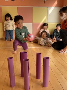 サンライズキッズ亀戸園は、寒さに負けずに元気よくボーリングしている姿を紹介したいと思います🎳