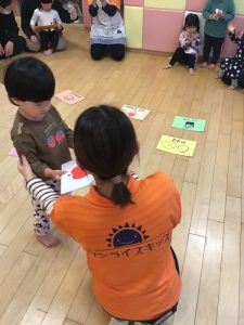 基本的な挨拶からフラッシュカード、最近は子どもたちの中でABCにも興味を持っているのでABCにちなんだ絵カードゲームに取り組んでいます!