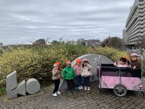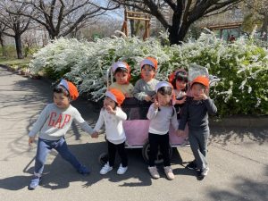 また、この園のある亀戸五丁目周辺をとっても目立つオレンジ色のユニフォーム(笑)で元気いっぱいの子どもたちとほぼ毎日お散歩しておりますので、